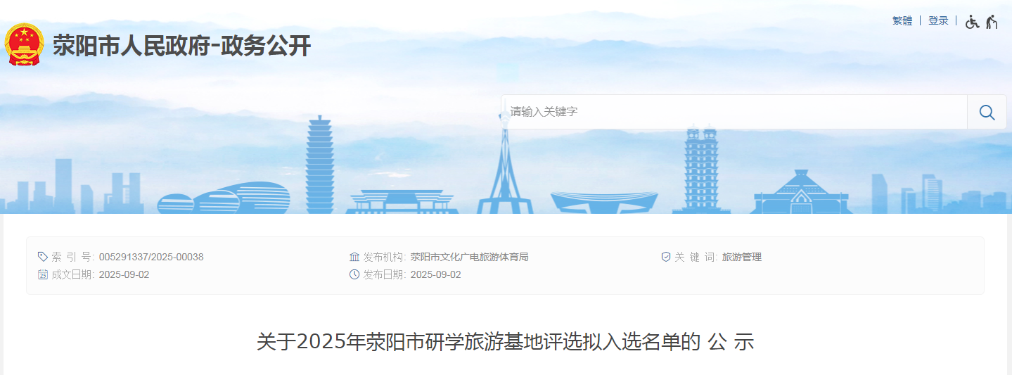 关于2025年荥阳市研学旅游基地评选拟入选名单的公示